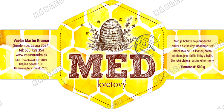 Tu uveďte parametre vašej etikety na med