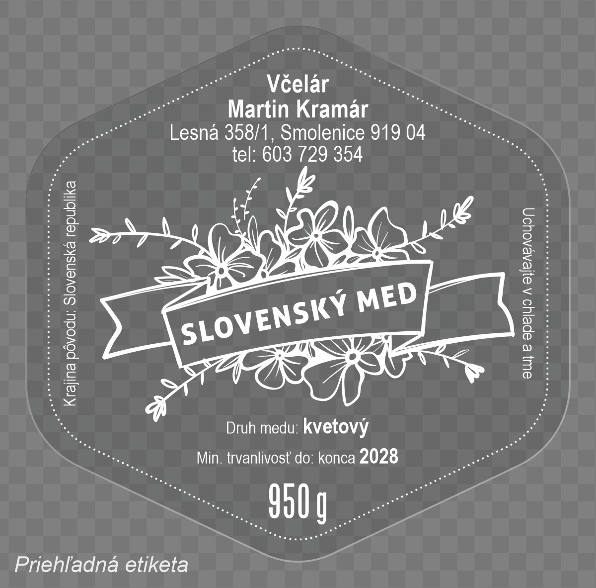 Úvod > Transparentné etikety na med > Transparentné etikety na med šesťhranné 62x61mm zaoblené - tlač bielu