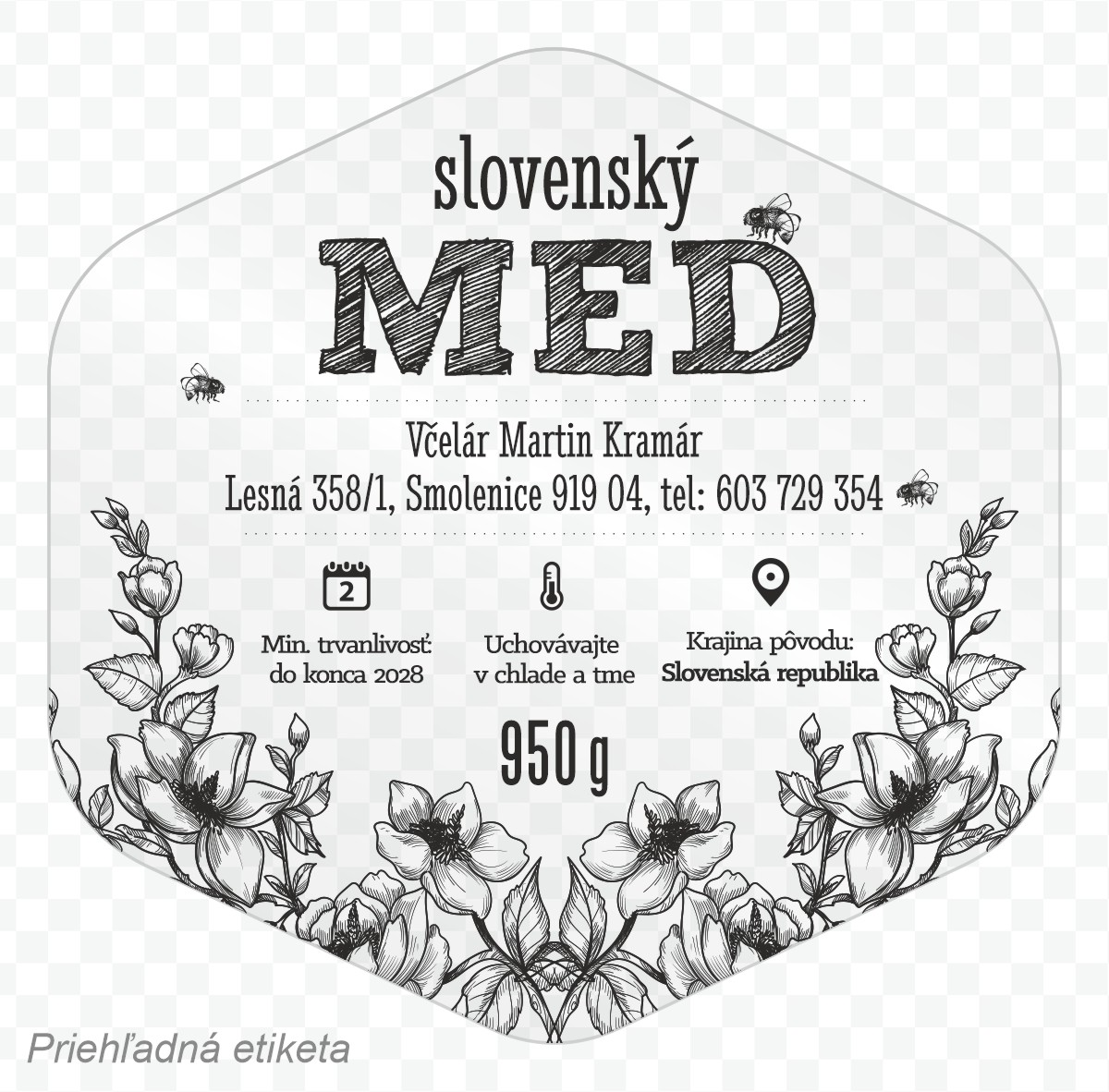 Tu uveďte parametre vašej etikety na med