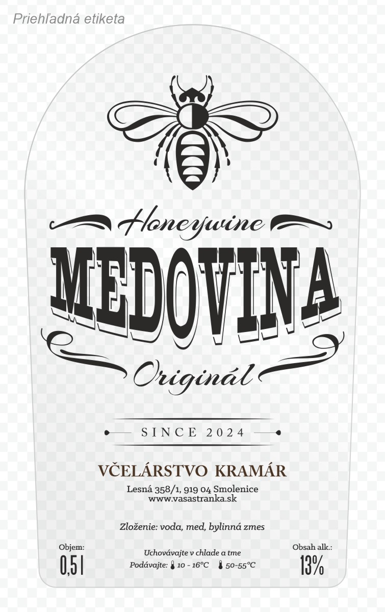 Etiketa na fľašu medoviny s objemom napríklad 0,5l, 0,75l alebo 1l. Ak sa vám táto etiketa páči a chceli by ste jej aj v inom formáte/rozmere z našej ponuky, nie je to problém, radi vám ju upravíme Stačí si vybrať vami požadovaný rozmer etikety v sekcii Etikety s vašou grafikou a objednať.