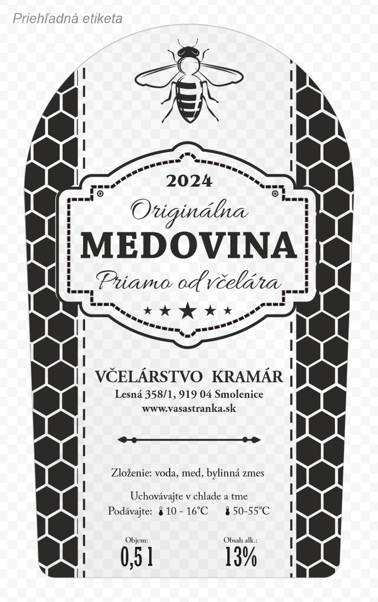 Etiketa na fľašu medoviny s objemom napríklad 0,5l, 0,75l alebo 1l. Ak sa vám táto etiketa páči a chceli by ste jej aj v inom formáte/rozmere z našej ponuky, nie je to problém, radi vám ju upravíme Stačí si vybrať vami požadovaný rozmer etikety v sekcii Etikety s vašou grafikou a objednať.